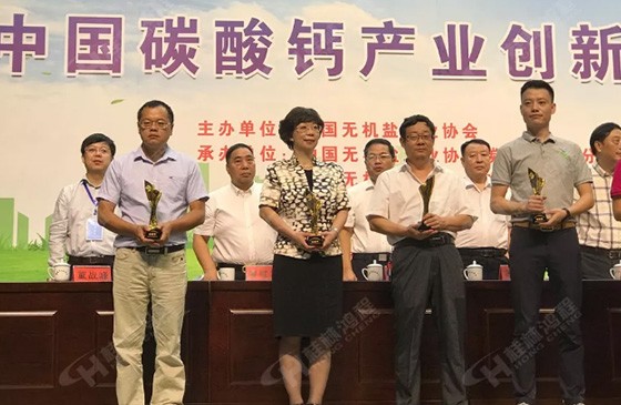 2019年9月6日-8日,2019年中國碳酸鈣產(chǎn)業(yè)創(chuàng)新大會暨行業(yè)年會在浙江省建德市隆重開幕桂林鴻程榮獲2019中國碳酸鈣行業(yè)創(chuàng)新獎 桂林鴻程總裁容北國(左一)參...